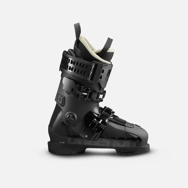 Comfort and sustainability are baked into every detail. The patent-pending Phaenom Strap uses a single recyclable material to deliver elastic rebound, vibration damping, and refined flex control—translating skier input into smooth, efficient energy. Underfoot, a shock-absorbing sole filters high- and low-frequency vibrations to reduce fatigue and soften landings. Finished in a purposeful all-black design, every component is designed to be repairable, reusable, and recyclable—clean in look and thoughtful in construction.